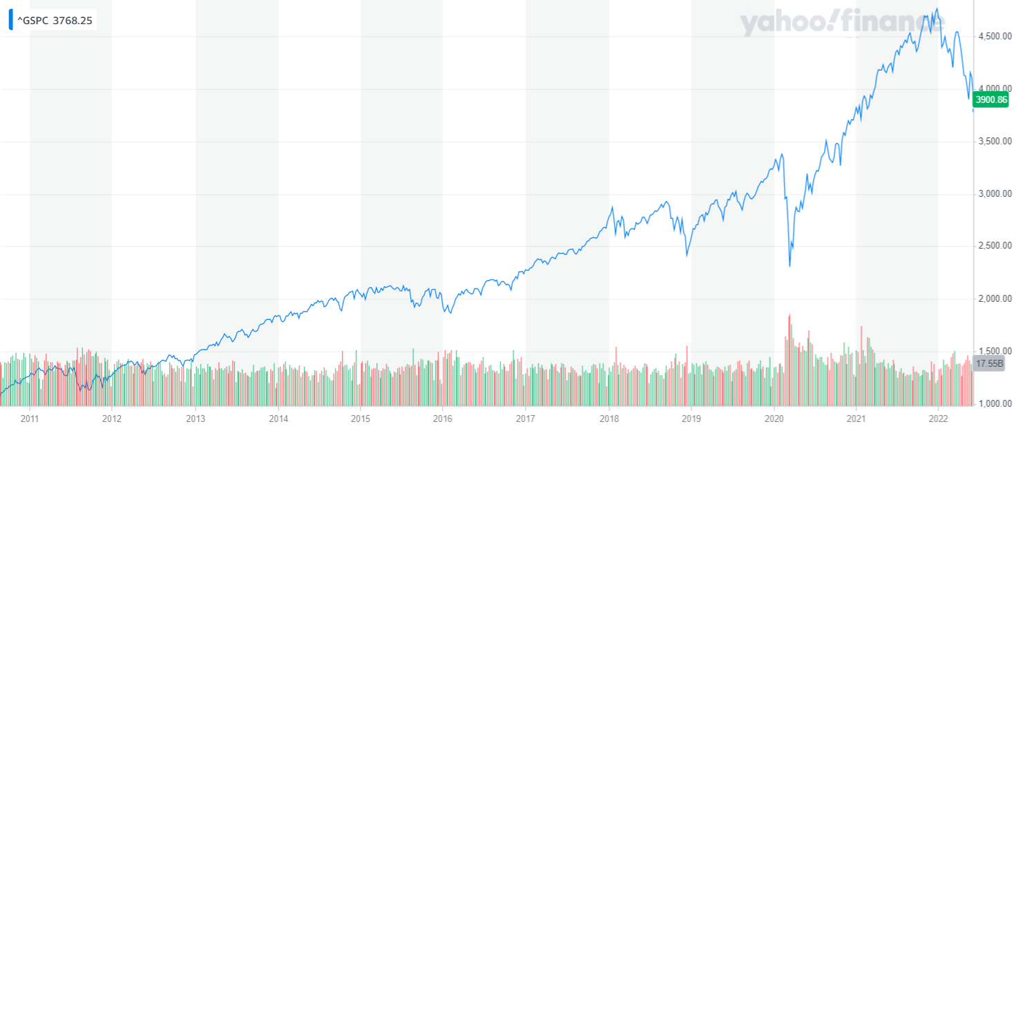 - The S&P 500 fell from 4,766 in late December 2021 to 3,900 today, a 20% loss;