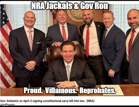 In a private ceremony in Tallahassee on April 3, 2023, this small group of villainous reprobates gathered in private to celebrate the signing of a new law which allows permitless concealed carry of firearms in Florida.