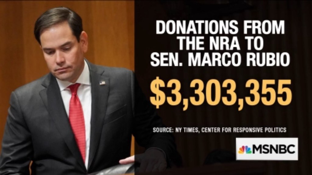 Sen. Marco Rubio holds an A-plus rating from the NRA and has received at least $3.3 Million of NRA campaign money, thus I thought it might be an uphill battle trying to engage Marco Rubio in an honest debate regarding the probability that AR-15 style weapons might be a root cause of the U.S. epidemic of gun violence.